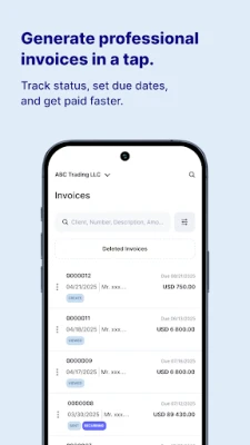 Create, customize, and send professional invoices in seconds. Track invoice status, set due dates, and get paid faster – all without leaving the app.