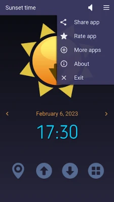 - To find the sunset time, tap the Sunset button.