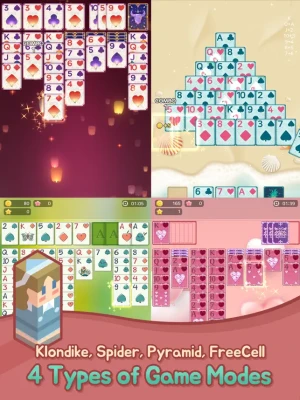 - Enjoy 4-types : Klondike, Spider, Pyramid, FreeCell card games!