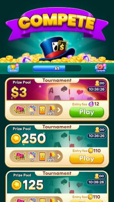 Dive into thrilling Solitaire tournaments where every move counts. Play Coin Tournaments to earn game Coins, or complete challenges to win valuable Crystals! Use your winnings to unlock new buildings and expand your very own Town. The more you play, the more your town thrives, offering a continuous sense of progression and discovery.