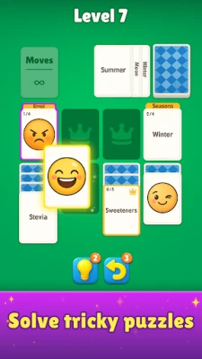 Each level gives you a set of elements — words or pictures by cards — and your goal is to group them using logic and intuition. Find hidden links, discover surprising combinations, and enjoy a satisfying flow of brain-friendly gameplay. It’s easy to learn, deeply relaxing, and wonderfully absorbing.