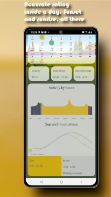 For each day, the app shows a forecast of daily activity and also the times of day when the fish are most active. Sunset and sunrise times are shown, as well as the phases of the moon. The fishing calendar is based on the ancient custom of hunting and fishing according to the phases of the moon. I recommend you to try this fish calendar. Features: * Solunar fishing calendar * Best days for fishing and hunting * Best time of day for fishing and hunting * Sunrise and sunset times * Moonrise and sunset times * Phases of the moon