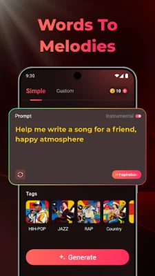 Turn words into music in minutes. SongAI generates full songs—lyrics, melody, and instrumental backing—based on your text input. No prior music skills required.