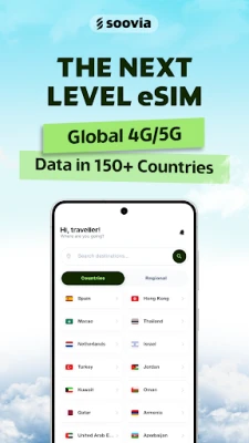 Soovia is a global eSIM provider offering country, regional, and worldwide data plans. You enjoy fast 4G and 5G in more than 150 destinations with no roaming fees or contracts. Your connection follows you across borders without changing SIM cards.