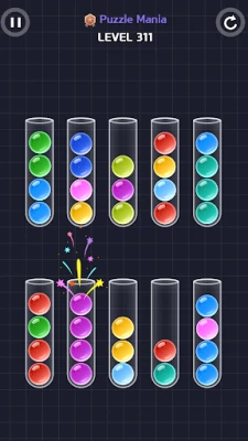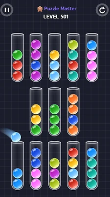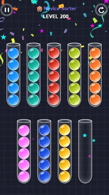 - Match all bottles on the screen to the same color to complete the stage.