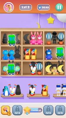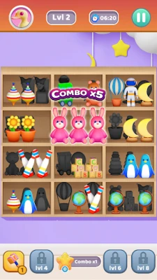 Swipe identical toys and match them together to empty all the shelves. Enjoy calm gameplay with hundreds of colorful levels, powerful boosts and adorable little toys.