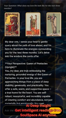 Forget generic, robotic interpretations. SoulSpace’s AI is trained to act as a wise, conversational mentor. It analyzes your unique question, the cards you draw (including upright and reversed meanings), and their positions in the spread to deliver a highly personalized, structured, and insightful reading.