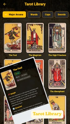 Enter the "Secret Room" for your readings. With stunning card animations, haptic feedback during draws, and a calming, mysterious background soundtrack, every reading feels like a genuine, magical ritual.