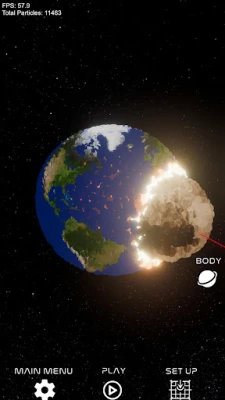 The simulation lets you jump straight into high-energy collisions or customize initial conditions in Setup Mode. Adjust parameters like particle count, planet velocity, and collision accuracy to create your own collision scenarios.