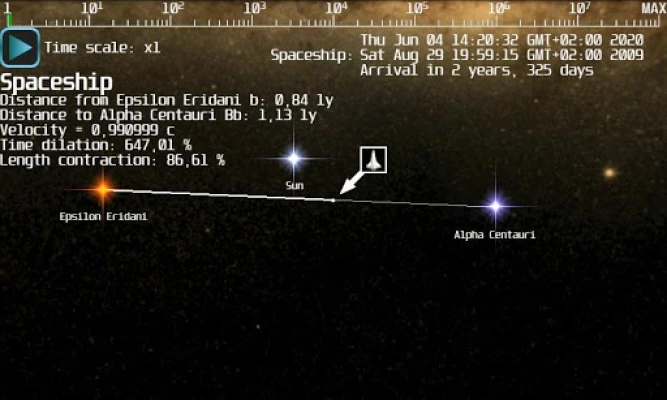 - Relativistic effects of time dilation, length contraction and relativistic doppler shift during interstellar flights