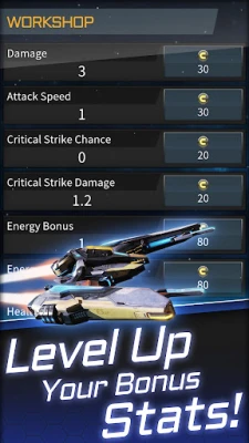 As you progress, unlock a variety of upgrades that permanently enhance your spaceship. Each new addition brings you closer to becoming the ultimate defender of the galaxy.