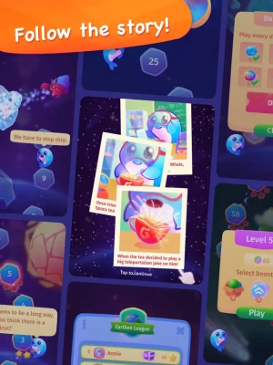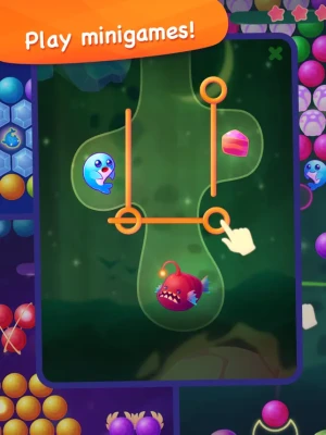 Tap and hold the screen to aim and shoot. Match 3 or more bubbles of the same color to pop them. Achieve each level's goal and have a whale of a time!