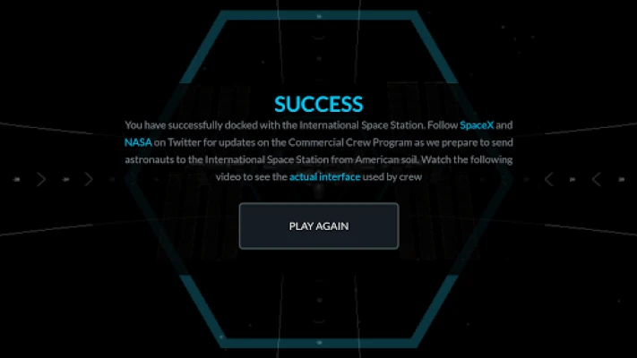 This simulator will familiarize you with the controls of the actual interface used by NASA Astronauts to manually pilot the SpaceX Dragon 2 vehicle to the International Space Station. Successful docking is achieved when all green numbers in the center of the interface are below 0.2. Movement in space is slow and requires patience & precision.