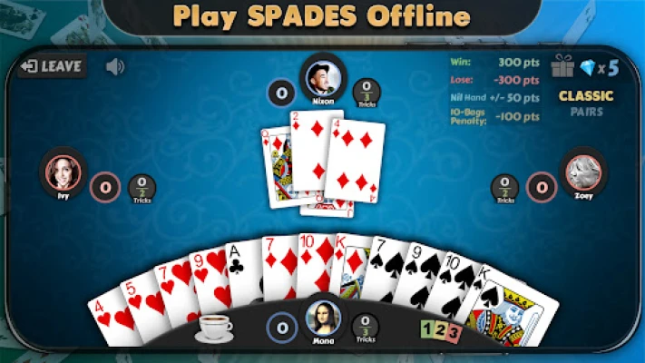 Download and play offline Spades plus enjoy a variety of features for free! If you like playing free Spades plus Bid Whist, this will be your favourite classic card game. It is also one of the best choices for lovers of Hearts, Euchre, Pinochle, or Rummy.