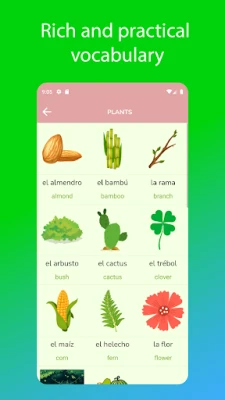 Our language learning app will help you learn Spanish vocabulary in the simplest and most effective way. You will learn words through games and pronunciation.