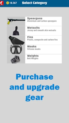 - Upgrade your speargun, wetsuit, fins, mask and other items.