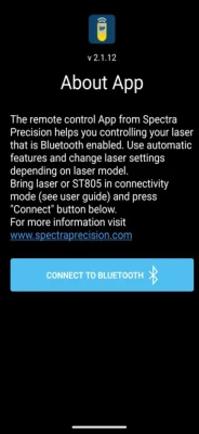 The Spectra Precision Laser Remote App connects to the GL1425C, HV1305C, HV1305GC, and LL1505C directly.
