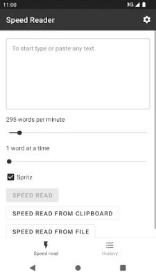 Speed Reading only shows one word at a time. You start with 300 words per minute. Using this Speed Reader App, you can easily speed read 750 words per minute. The more you are using Speed Reader, the faster you will be speed reading and increase your reading speed.
