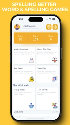 Select from a variety of game modes like word quizzes, multiplayer spelling challenges, or self-paced learning.