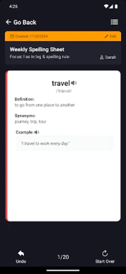 Experience the power of cutting-edge AI technology with Spelling Buddy! Simply snap a photo, and Spelling Buddy will generate a highly accurate spelling sheet in seconds. Each word comes alive with detailed definitions, synonyms, and example sentences to deepen comprehension and retention. To further enrich the learning journey, Spelling Buddy provides AI-generated audio for word and sentence pronunciation, enhancing listening and speaking skills. Plus, with optional language support, non-native English-speaking parents can effortlessly coach their kids through homework, making learning accessible and enjoyable for everyone.