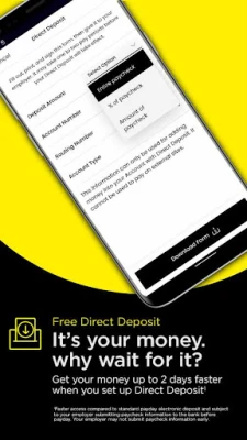 • Get your pay up to 2 days early when you set up direct deposit¹