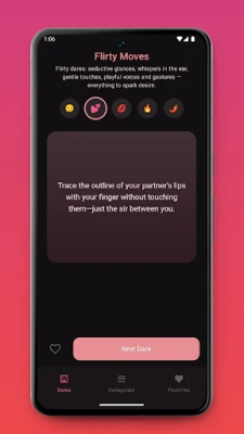 Unlike typical truth or dare apps, this game focuses exclusively on dares — no awkward questions, just action! Every challenge is designed to bring you closer, whether through laughter, tenderness, or passion.