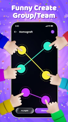 π₯ Homograft β Random Team Generator: Need to split a group into teams quickly and fairly? Just hold the screen for 2 seconds, and the app will shuffle everyone into balanced, random teams. Ideal for school, parties, or work environments.