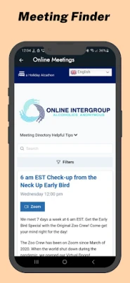 Has an integrated online meeting guide that helps you find meetings any time of day, and open them automatically in your video conferencing apps. Be sure to check it out for Alcoholics Anonymous meetings around the world!