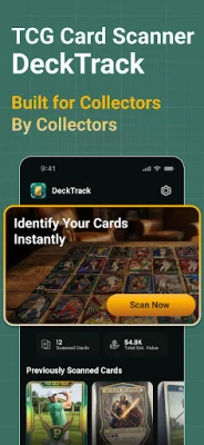 DeckTrack is an easy-to-use TCG Card Scanner and Collection Tracker designed for collectors at every stage — from casual fans to those who want to take collecting more seriously. With DeckTrack you can scan your cards, understand their value, and grow your TCG collection with confidence.