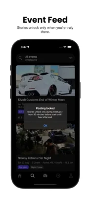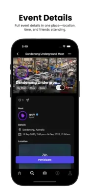 • Discover car meets, house parties, raves, and local pop-ups.