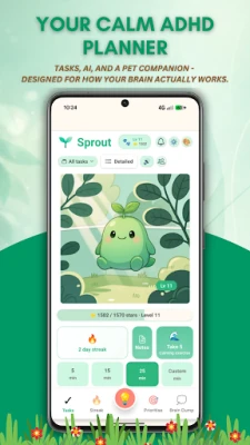 Sprout is an ADHD planner, ADHD to-do list and task manager designed for executive dysfunction, time blindness, decision fatigue and ADHD organization challenges.