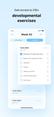 - A set of exercises for each day. They match the stage of your baby's development and don't take much time. The checklist format makes it easy to keep track of completed exercises.