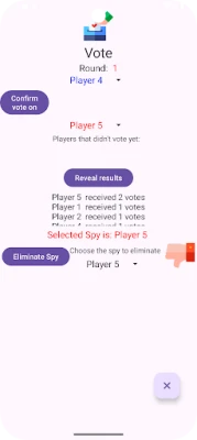 When all players have voted, you can reveal results and choose the spy to eliminate.