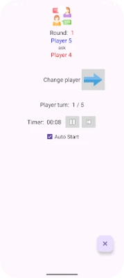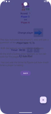 The App indicates the player(1) who will ask a question of his own to player(2).