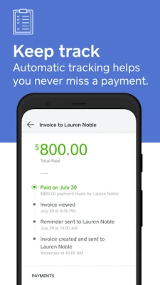 ► Stop chasing down payments with automatic payment reminders and transparent invoice tracking that tells you the moment each invoice is viewed and paid.