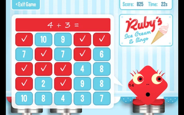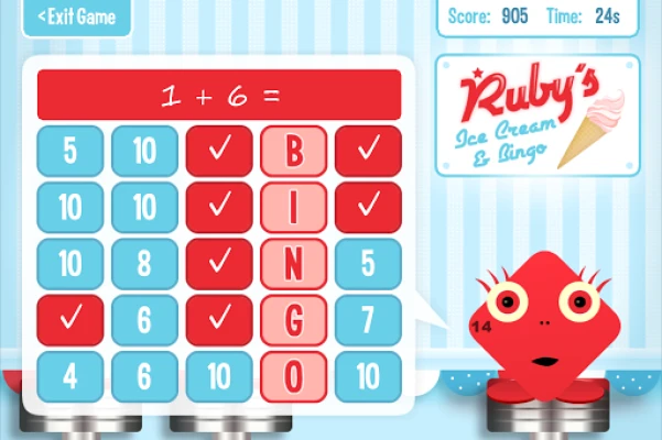 By answering addition, subtraction, multiplication and division problems in a fun bingo card game, help Ruby get her ingredients back and convince the 24 Squeeble customers to return.