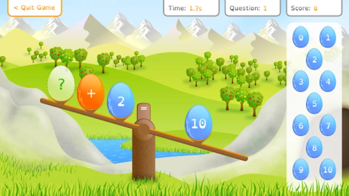Drag numbered eggs onto a seesaw to balance the addition or subtraction questions.