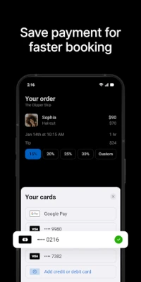 - Pay seamlessly with contactless payment by using your card on file to securely pay for services and tips.