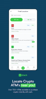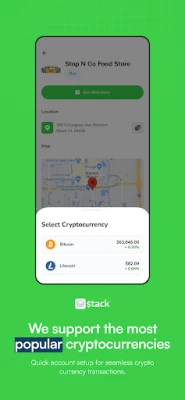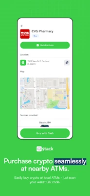 Stack: Buy & Sell Crypto instantly at trusted retail locations or online at home. Use cash to Buy Crypto at over 40,000 Retail Locations across the United States. Sell your Crypto in our app and withdraw cash from an ATM near you. We are a non-custodial Crypto Currency Exchange and never hold your funds. Currently, Stack only Operates in the US. Stack is licensed in Kentucky, Washington, Arkansas, and Minnesota.