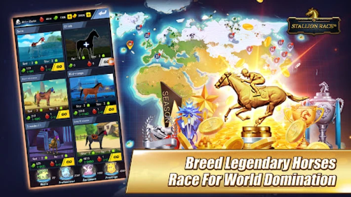 Forget Kentucky Derby, Belmont Stake and Cheltenham, the best competitions are now in your hands, race for global domination in Stallion Race on fresh tracks! Compete in Scramble, Ascension, Private Cup, League, Challenge Legend, Championship and Contest! Participate in lots of events to win rewards every day.