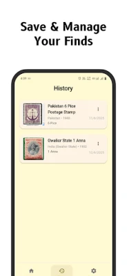 The Stamp Identifier app provides a feature to save the previous identifications. The user can view, share, and delete the previous identifications. The user can access this data offline.