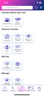 • Mobile Check Deposit • Account Funds Transfers • Add Access to All of Your Memberships Under One Login • Star One Branches/ ATMs/Shared Branches Locator • Star One Visa Cards Activation • Primary Account Balance Sneak-Peek • Mortgage Rate Watch • Update Your Account Contact Information