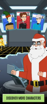 Star Trek Lower Decks Mobile gives you the chance to tap through classic Star Trek stories in the humorous style of Lower Decks. Enjoy your favorite storylines with a fresh funny twist – and maybe even give them new endings!