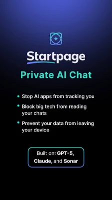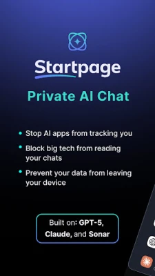 Welcome to Startpage Private AI Chat, your trusted, privacy-first AI companion, now available on Android. Startpage Private AI ensures your privacy and security by never logging your IP address or chat queries, storing conversations only locally on your device (never on our servers), and giving you full control to erase individual chats or your entire chat history at any time.