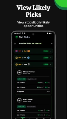 Stat Pick combines comprehensive player statistics with AI-powered recommendations to help you research any NBA player prop. Select a player, choose a stat, and instantly see hit rates, averages, and detailed matchup data—then let our AI analyze the over/under likelihood. Track every pick you make and see your performance over time.