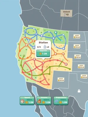 For all lovers of world roads games - State Railroad: Train Game! It is a dynamic and fascinating road strategy game where you need to connect the points on the map between each other to build a railroad and idle train station connecting all the states. This railroad connection game is very easy to control and incredibly enjoyable to play.