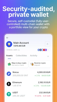 Status is your privacy companion for private, fully end-to-end encrypted messaging with friends, family, and business partners; a secure crypto wallet; and decentralized, self-sovereign, censorship-resistant community spaces.