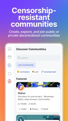 ✓ Decentralized communities: Self-sovereign, censorship-resistant community spaces for those who value privacy, freedom, and autonomy in their digital interactions.