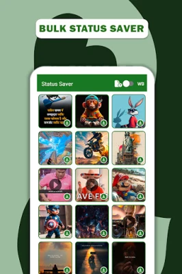 One-Tap Save or Bulk Download: Tap to save individual statuses or select bulk download for all.