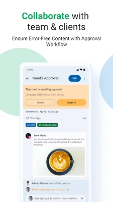 - View, edit, and approve your team’s posts with one tap